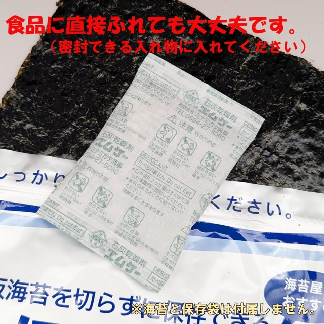 たとえば、 【1】食品の保存海苔、乾燥野菜、お菓子、乾物などの湿気対策としてっ! 開封後の袋に一緒に入れておくと、湿気を吸収して品質を保ちます。 ペットフードの湿気・カビ防止にも便利です。 (直接触れて大丈夫です)